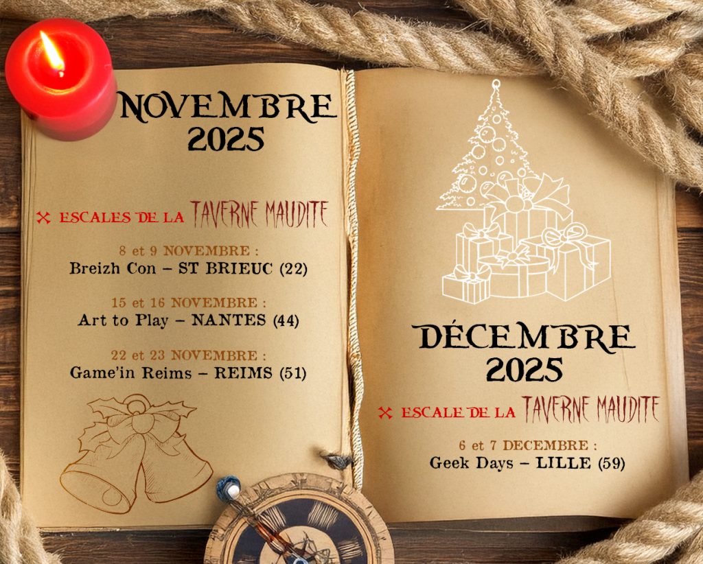 Merci de vous rappeler que la Taverne Maudite est avant tout un bar ITINERANT ! Nous sommes donc plus souvent sur les routes que dans notre Manoir ( Pour info notre Manoir n’est pas ouvert au public et il n’est donc pas possible de retirer votre commande sur place) . Il est donc impératif de vérifier notre période de présence si vous voulez recevoir votre commande chez vous. En dehors de la période ci-dessous actualisée au fur et à mesure de nos déplacements vous devrez commander via notre site et venir retirer votre commande sur les conventions où nous nous trouvons (voir le calendrier des évènements ).