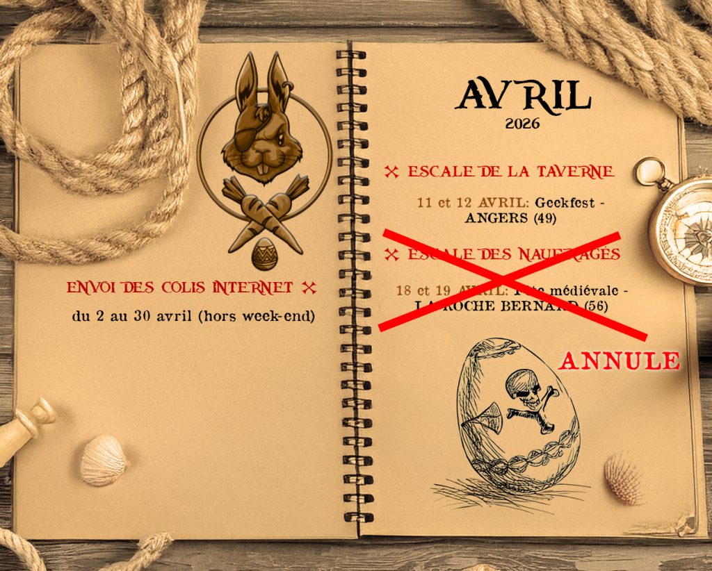 Merci de vous rappeler que la Taverne Maudite est avant tout un bar ITINERANT ! Nous sommes donc plus souvent sur les routes que dans notre Manoir ( Pour info notre Manoir n’est pas ouvert au public et il n’est donc pas possible de retirer votre commande sur place) . Il est donc impératif de vérifier notre période de présence si vous voulez recevoir votre commande chez vous. En dehors de la période ci-dessous actualisée au fur et à mesure de nos déplacements vous devrez commander via notre site et venir retirer votre commande sur les conventions où nous nous trouvons (voir le calendrier des évènements ).